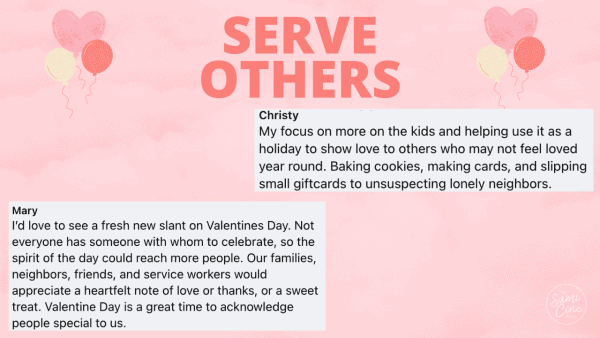 Several of the people I interviewed said they like to take the day to focus on others. We all remember Valentine’s days when we didn’t have someone to celebrate with (& the truth is many of us are still in this boat).