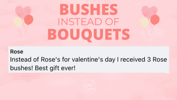 Many women said they’d rather receive a bush they could plant rather than an expensive bouquet will die in a week. I’m helping you create affordable bouquets on this month’s show as well. But I loved Rose’s response that the best gift she ever received was three rose bushes.