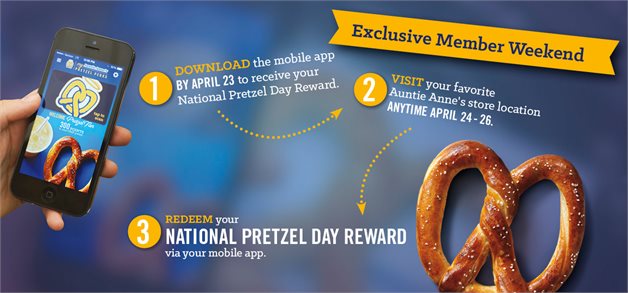I found out about Auntie Anne’s National Pretzel Day and how you can get a free pretzel!
