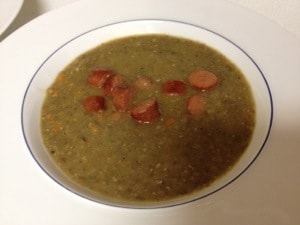 Now the one thing you won’t find in the recipe that I think makes this Lentil soup recipe complete is Hebrew National Hot Dogs cut up and added in the individual bowls just before eating. They add just a bit of saltiness and it’s similar to those recipes that cook their lentil soup with sausage. I also added some thyme to the vegetables the last time I cooked this and it was Delish!