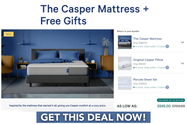 Right now, you can get the original Casper Bed Set for just $595! I know it’s technically over $500, but this set includes the mattress, 2 pillows, AND a sheet set. Seriously!