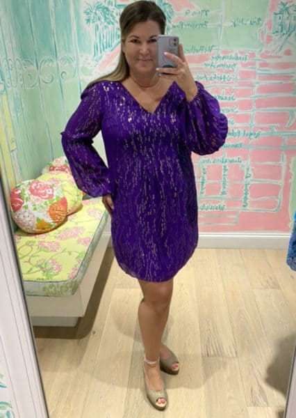 Case in point: the Cleme Silk Dress in Purple Berry Fish Clip Chiffon. Lilly had a very similar dress last year, but in Spruce Green, and I STILL REGRET not buying it. So when I saw the dress come back, this time in PURPLE, I couldn’t resist!