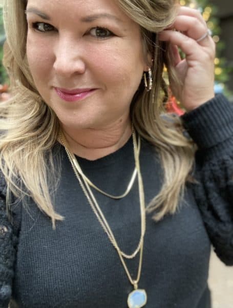 Another reason I chose the Lanetta Sweater was that I knew it would make a beautiful canvas for the newest holiday collection from Kendra Scott.