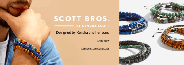 Kendra Scott has been a jewelry designer as long as she been a mom – as her boys have grown, so has this business. Scott Bros was designed in collaboration with Kendra Scott’s sons to be fun fashion that anyone can wear.