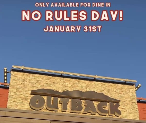 In fact, you can get a free appetizer OR dessert at Outback Steakhouse! All you have do to is say “NO RULES DAY” to your server and order any adult entree.