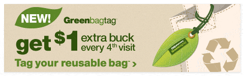 What I found was that their reusable bags are $.99 and you get $.99 back in extra care bucks! Plus, if you get one of their Green Bag Tags, you also can get $.99 in extra bucks back!