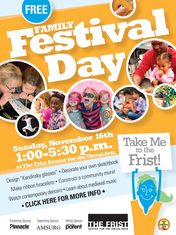Get free admission to the Frist Center for the Visual Arts in Nashville on November 16, 2014 during their Free Family Festival Day.
