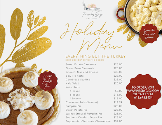 Pies by Gigi’s “Everything but the Turkey” Holiday Menu
