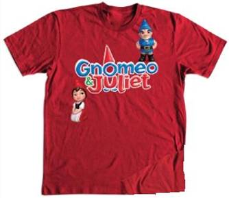 – Gnomeo & Juliet t-shirt in youth sizes of S, M, L, XL and colors of red or blue