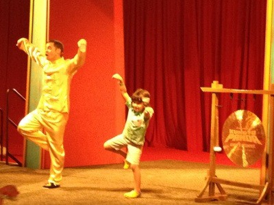 As you can see, he totally mastered all the poses taught by Master Wu. When it came time to change activities, Master Wu rang the gong: