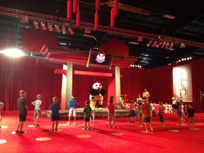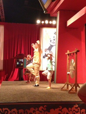 But then Po himself greeted us with a video opening that quickly captured our attention…and just as we were on the edge of our seats, the screen lifted to reveal a HUGE academy complete with pagoda!