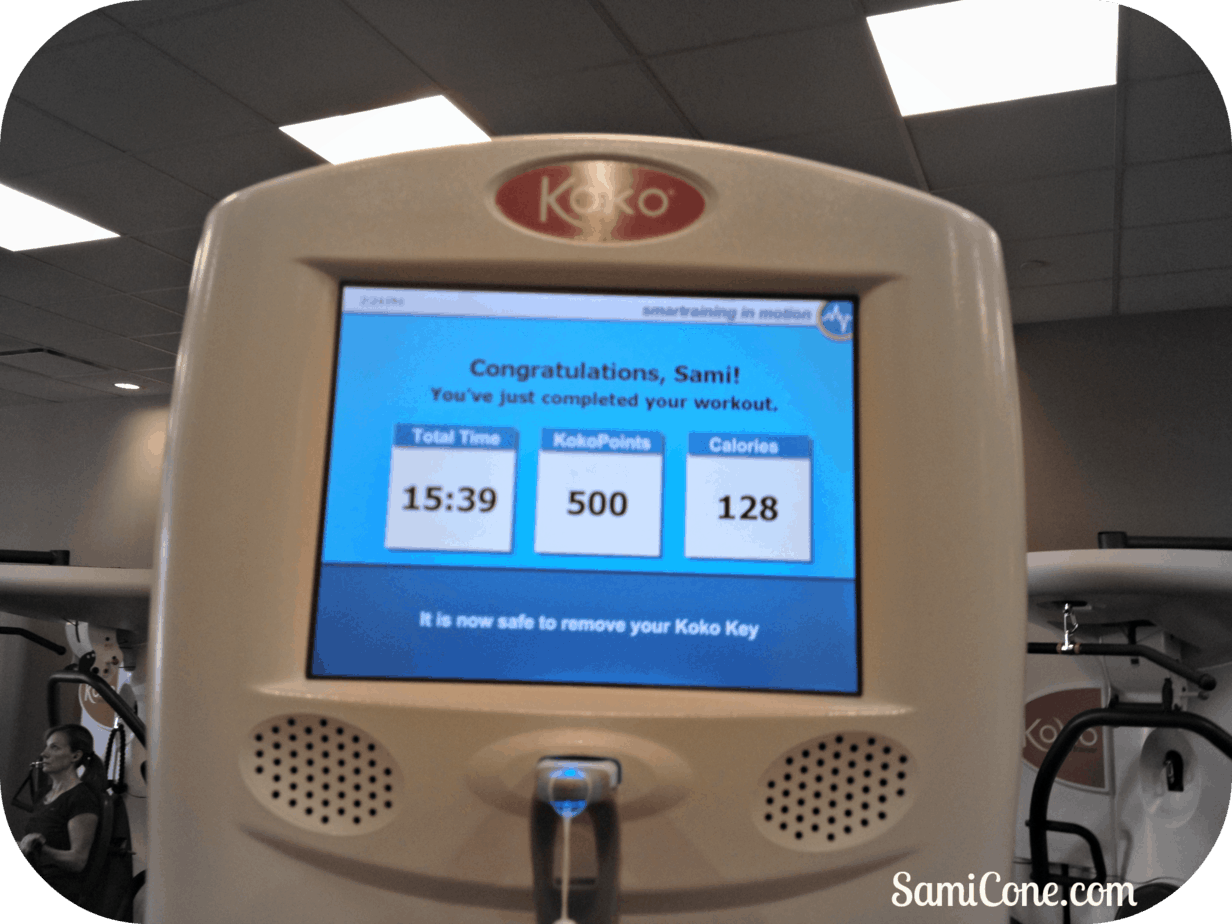 The Koko FitClub screen tells you exactly what level and resistance to be on minute by minute while you listen to your trainer in your earbuds doing the workout with you the entire time. After completing your workout, it logs your time, calories burned and Koko points earned (another fun feature if you’re competitive like me!):
