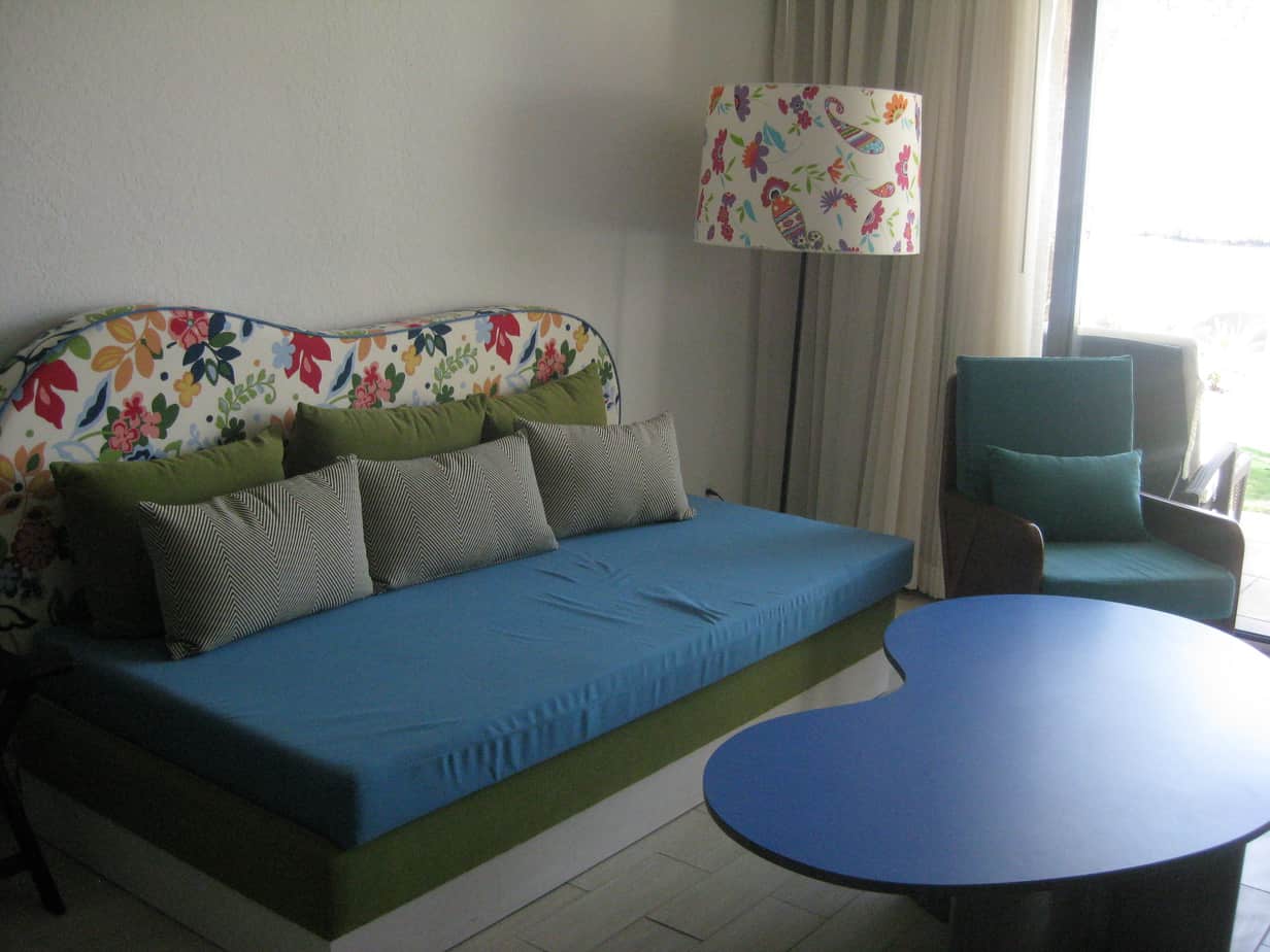 Nowhere have I ever seen a resort give such thought and attention to families traveling together! While not all the rooms have been renovated at this point, they have created amazing deluxe family rooms with a private room for parents, a separate bedroom for children, a large living space (with very Ikea-like interior design) and one and a half baths.
