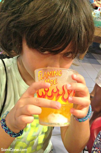 Our new friend Meredith who hosted as at Universal Studios that day insisted we try a “Flaming Moe”. I still can’t tell you exactly what  a Flaming Moe is, but suffice it to say it was a fizzy orange beverage made right in front of our eyes and smoked!